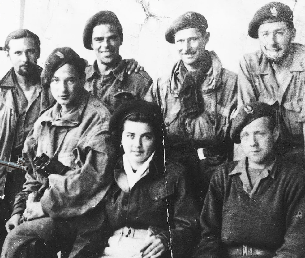 Female Italian Resistance Fighter, known as Norris pictured with members of the SAS